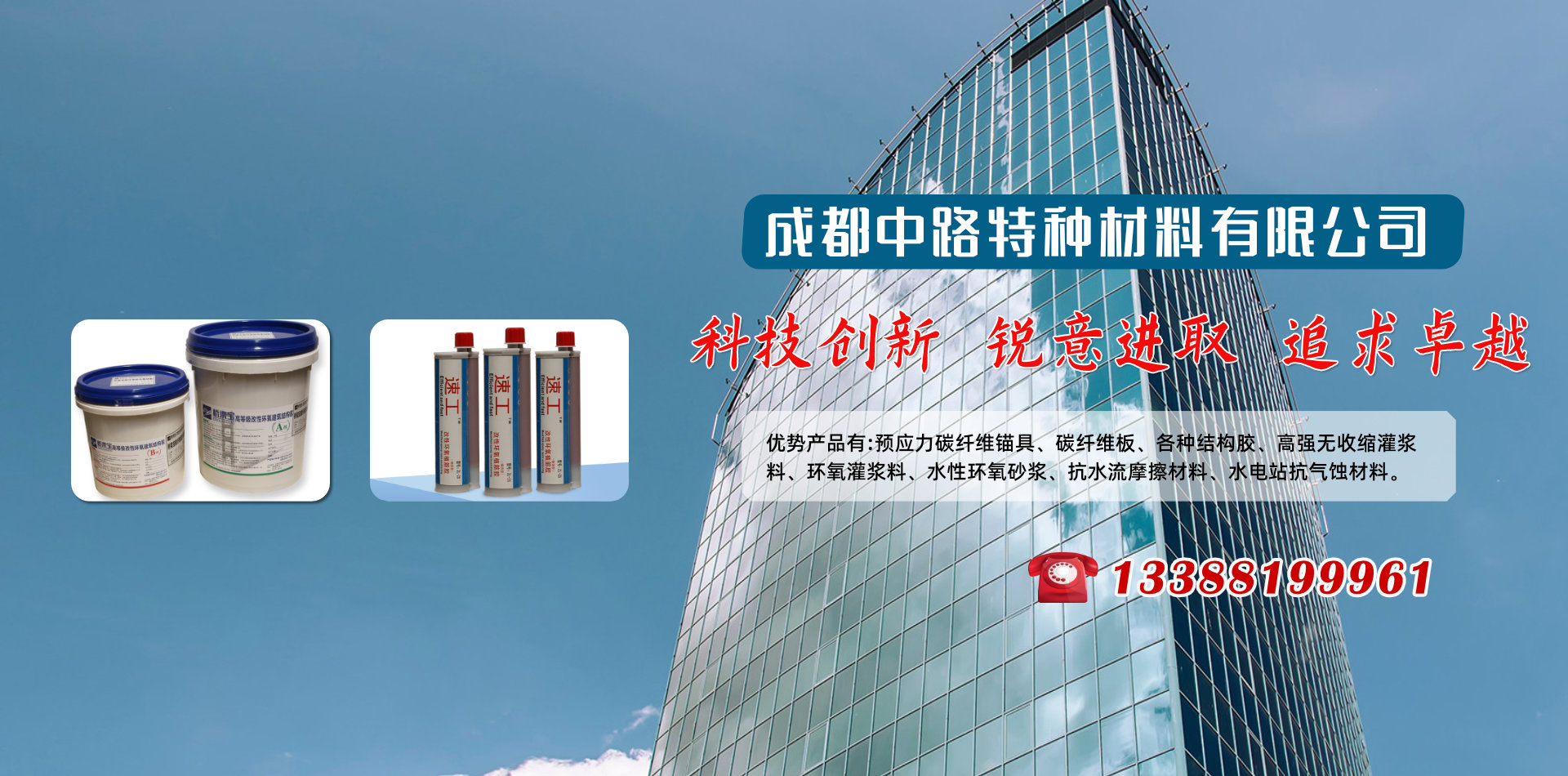 成都中路特種材料有限公司借助清華大學高分子材料學科、晨光化工研究院、西南交通大學、四川交通職業(yè)技術學院科研技術平臺成為一家集新材料研發(fā)、銷售、技術服務和施工于一體的專業(yè)服務公司,優(yōu)勢產品有:預應力碳纖維錨具、碳纖維板、各種結構膠、高強無收縮灌漿料、環(huán)氧灌漿料、水性環(huán)氧砂漿、抗水流摩擦材料、水電站抗氣蝕材料和研發(fā)各種特殊用途膠黏劑產品地處西南腹地成都,業(yè)務覆蓋四川各大中小城市、重慶、云南、昆明、新疆、西藏等區(qū)域。產品涵蓋各種加固施工材料、施工設備及施工配件,品牌有威士邦等aa進口品牌,同時批發(fā)銷售國產高、中、低端品牌,為客戶提供全面參考。